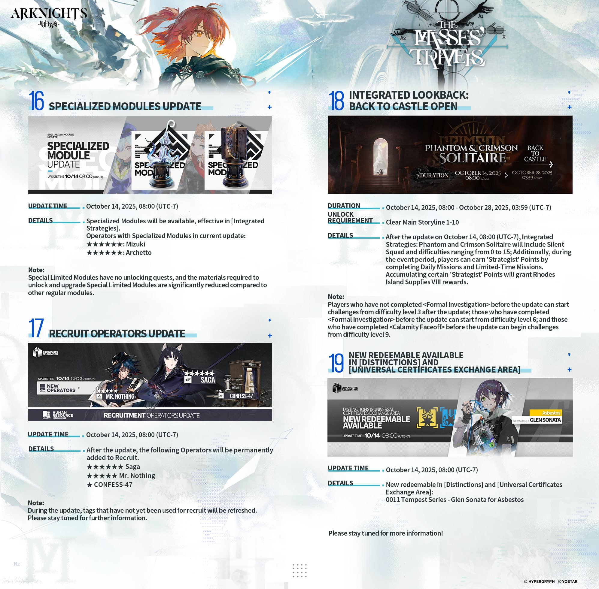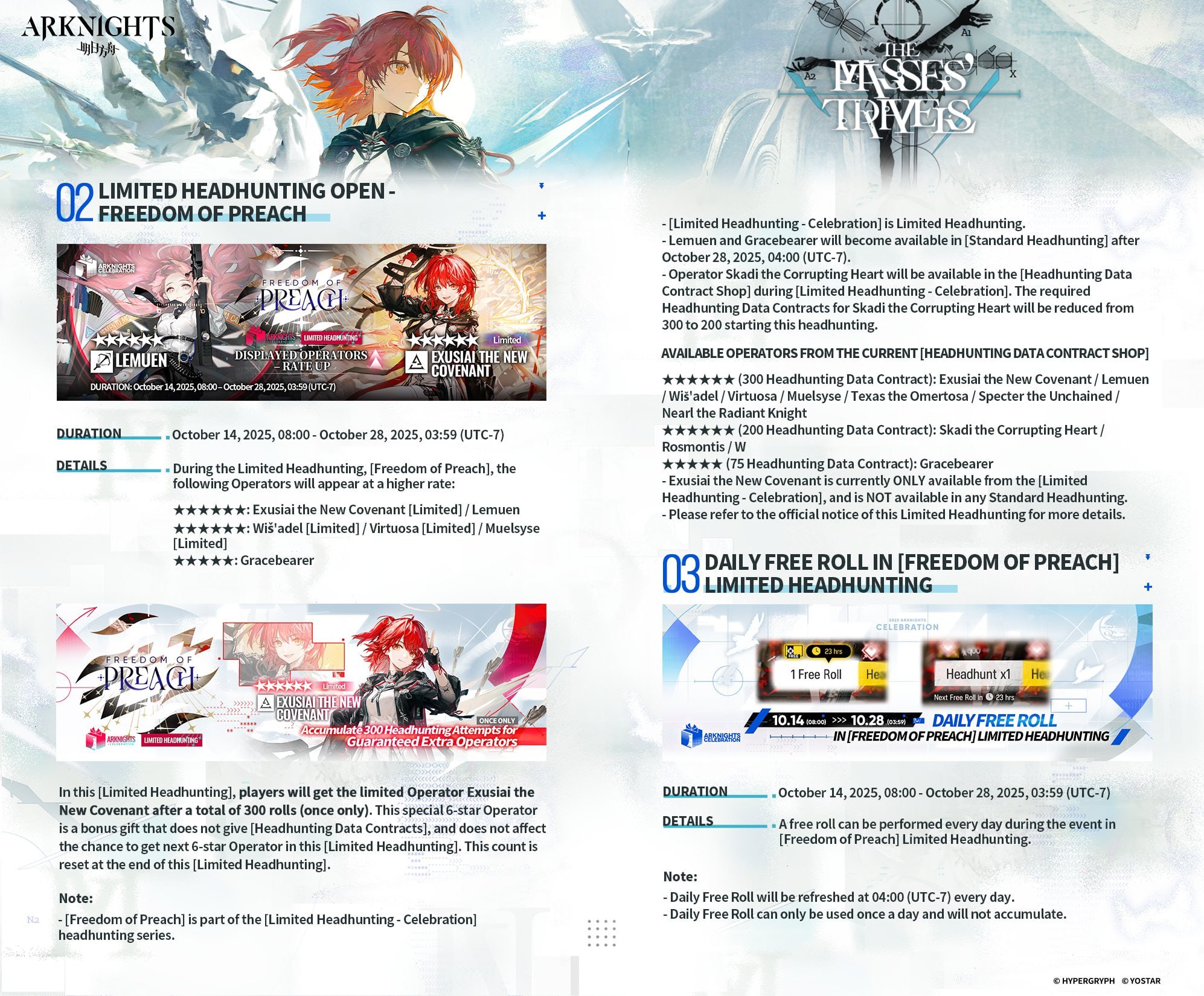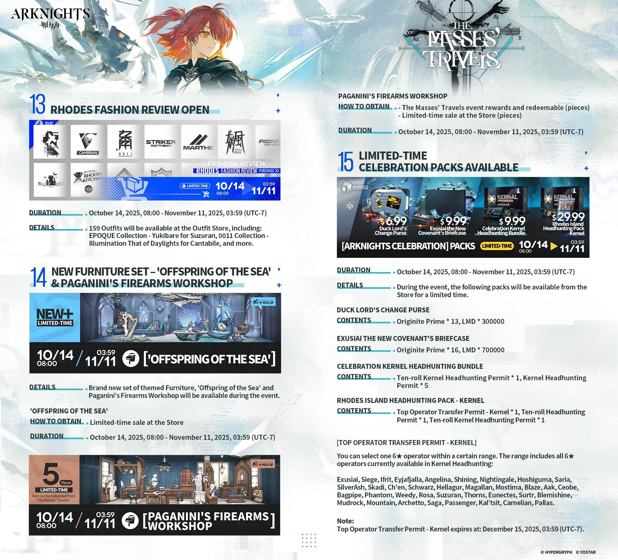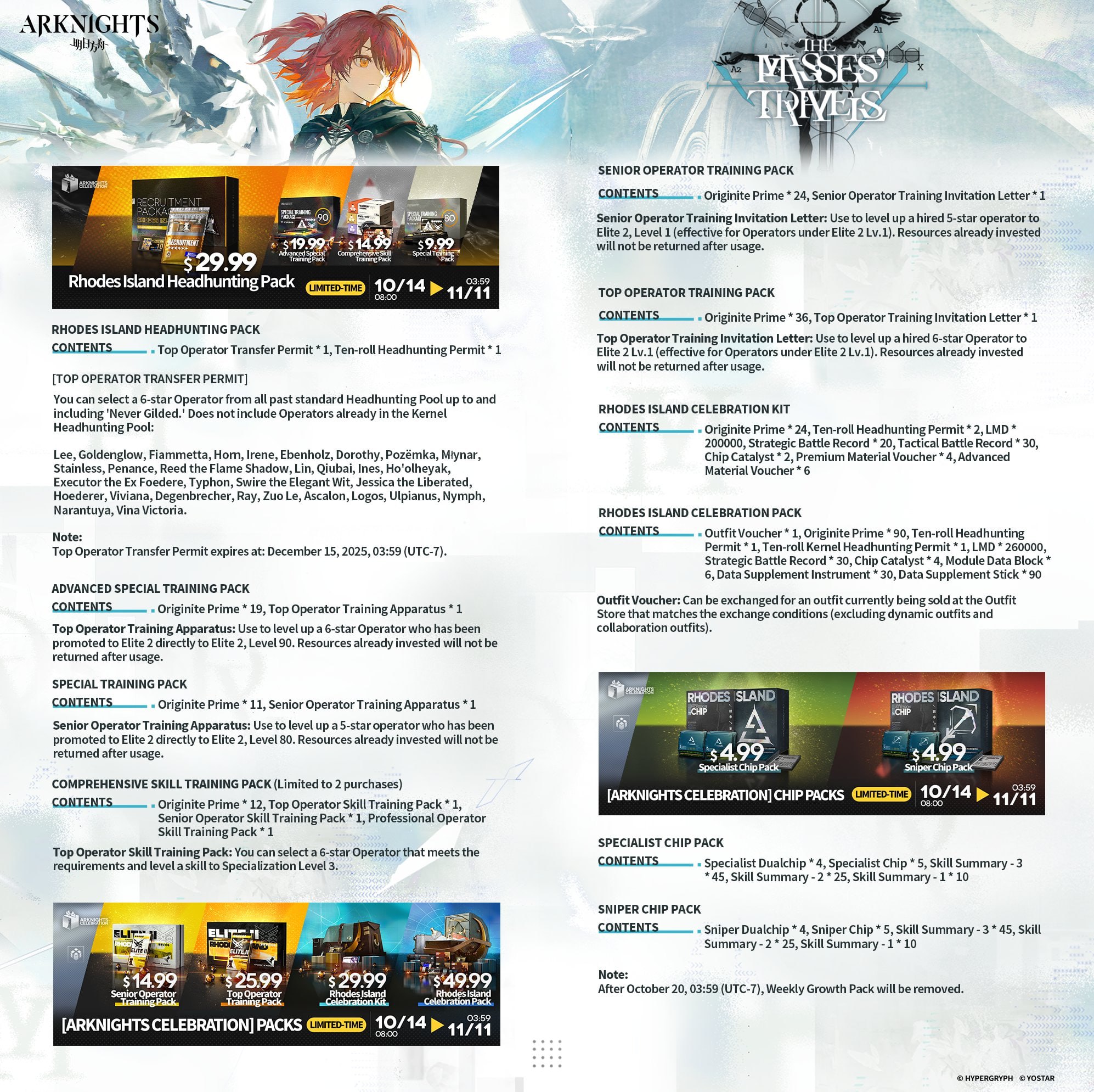 This banner has its own potency counter, which starts at zero. Spins from/to other banners do not carry over. A special currency is awarded for each pull. For 300 units, you can purchase a banner 6★ operator, including a limited one. If this currency is not used, it is converted into orange (Headhunting) certificates with a ratio of 1 currency => 6 certificates